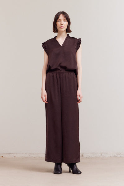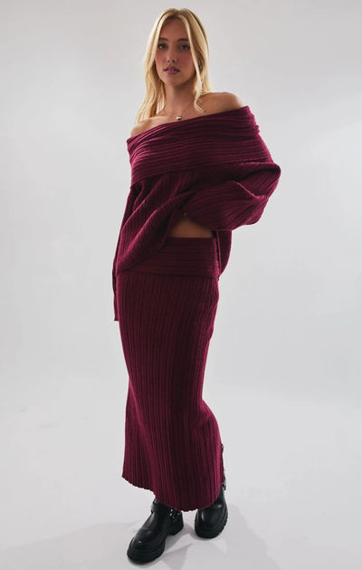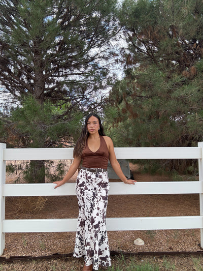 CHOCOLATE BROWN PLAID MAXI SKIRT