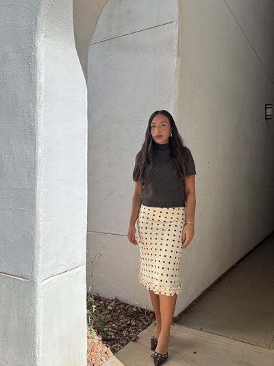 CREAM/BLACK POLKA DOT MIDI SKIRT