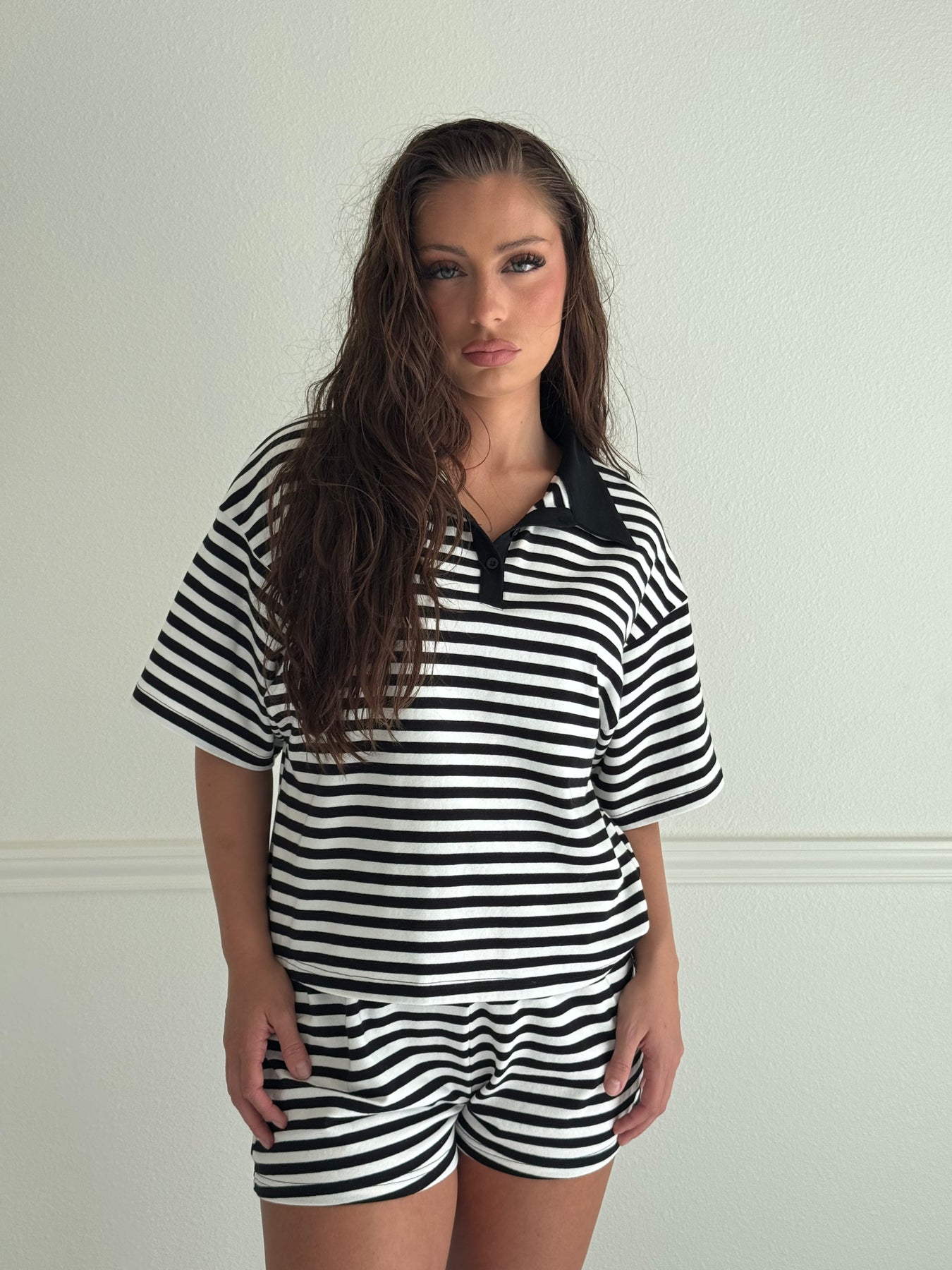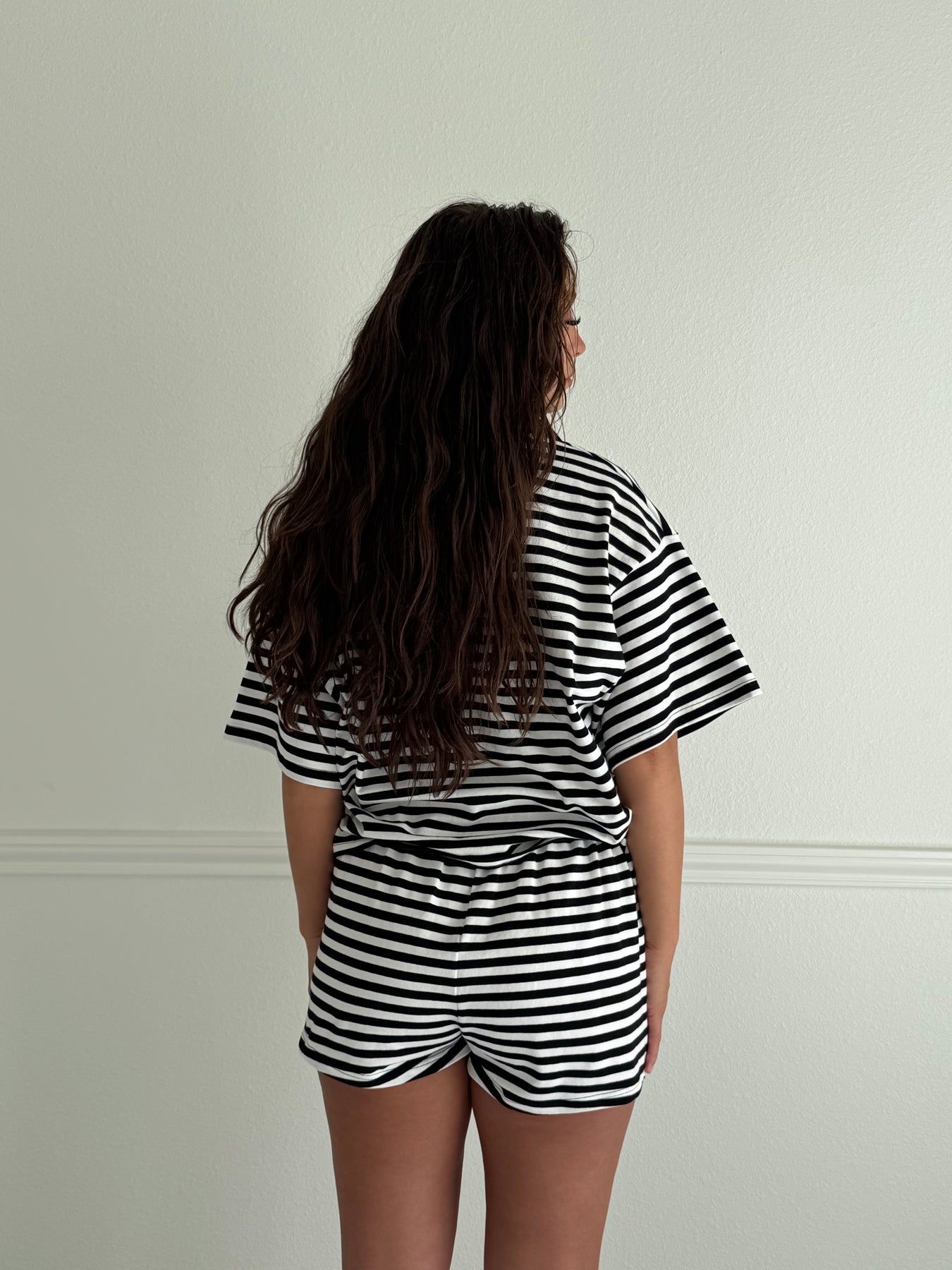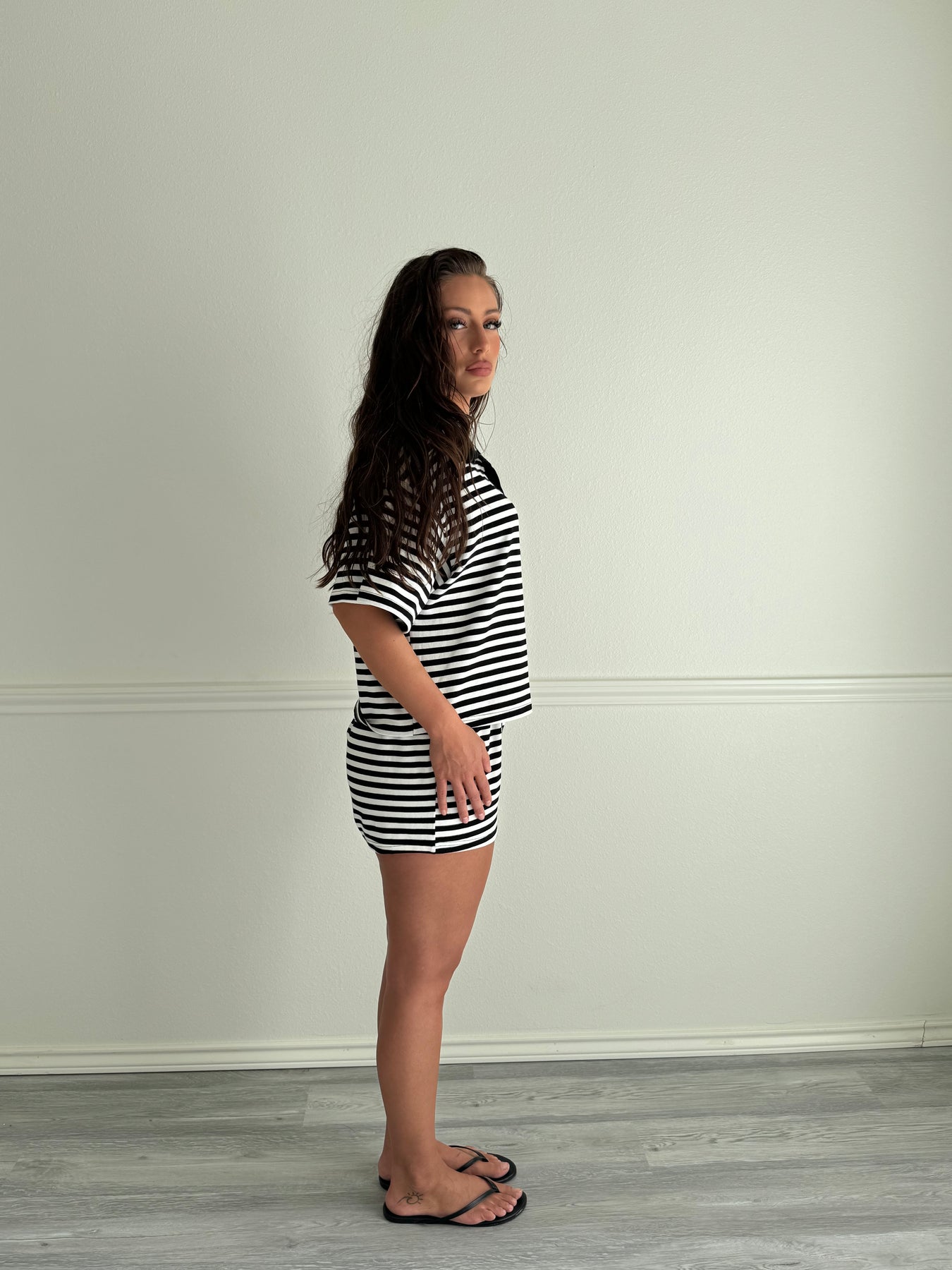 BLACK/WHITE STRIPED TOP + SHORTS SET