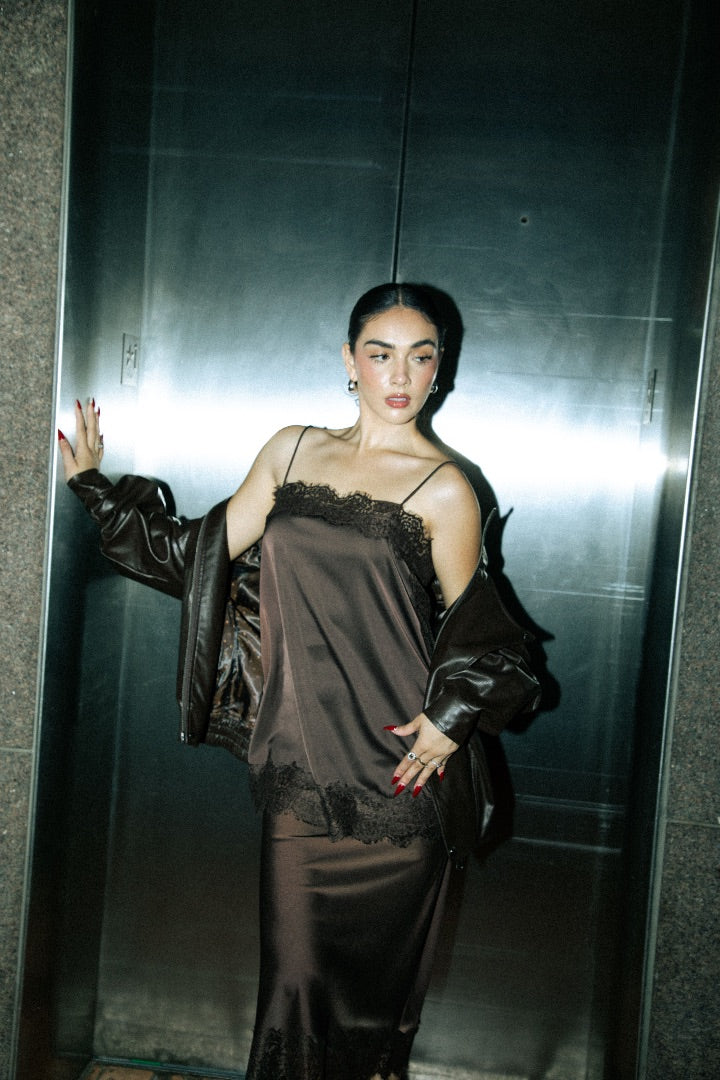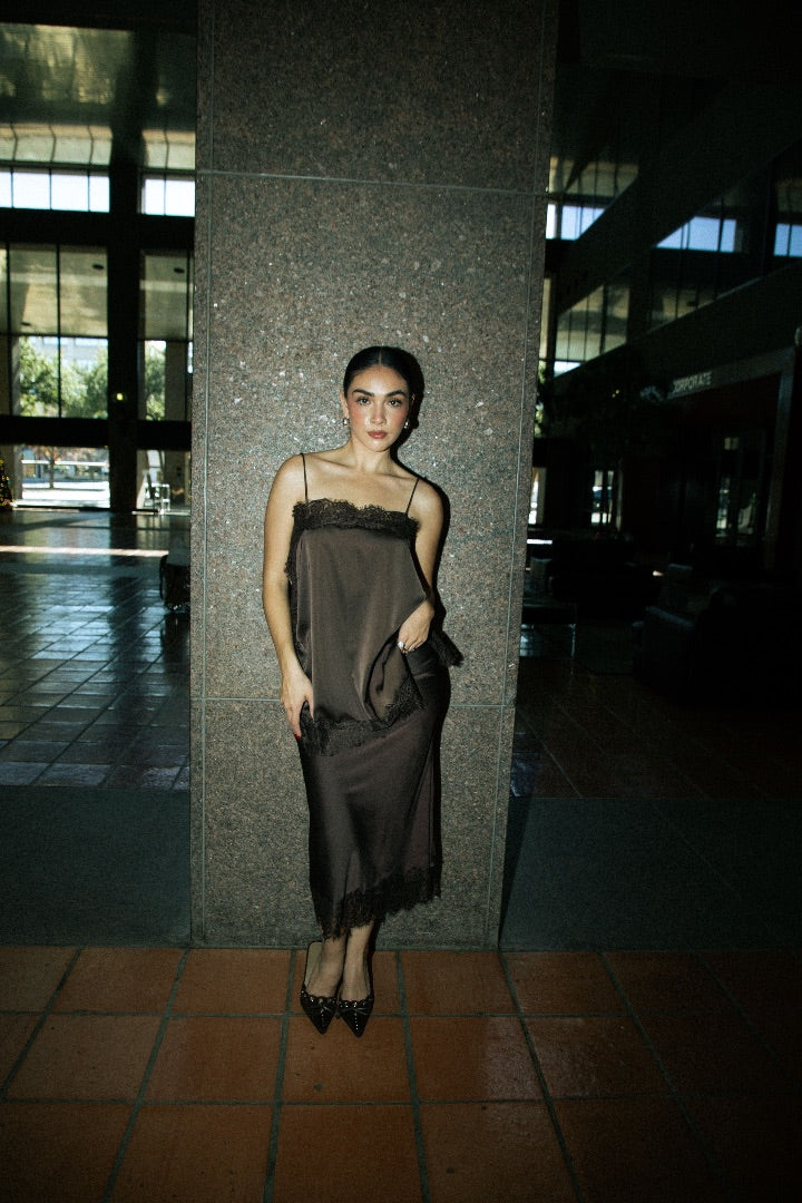 BROWN CAMI + SKIRT SET