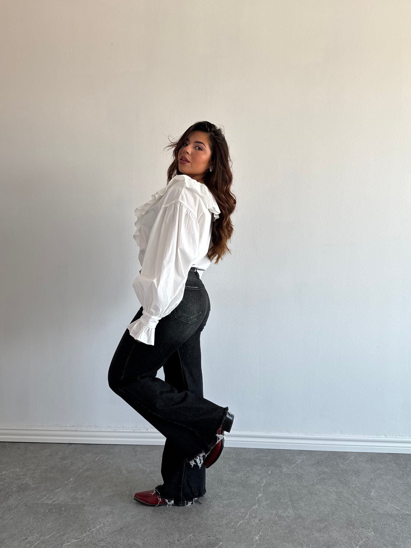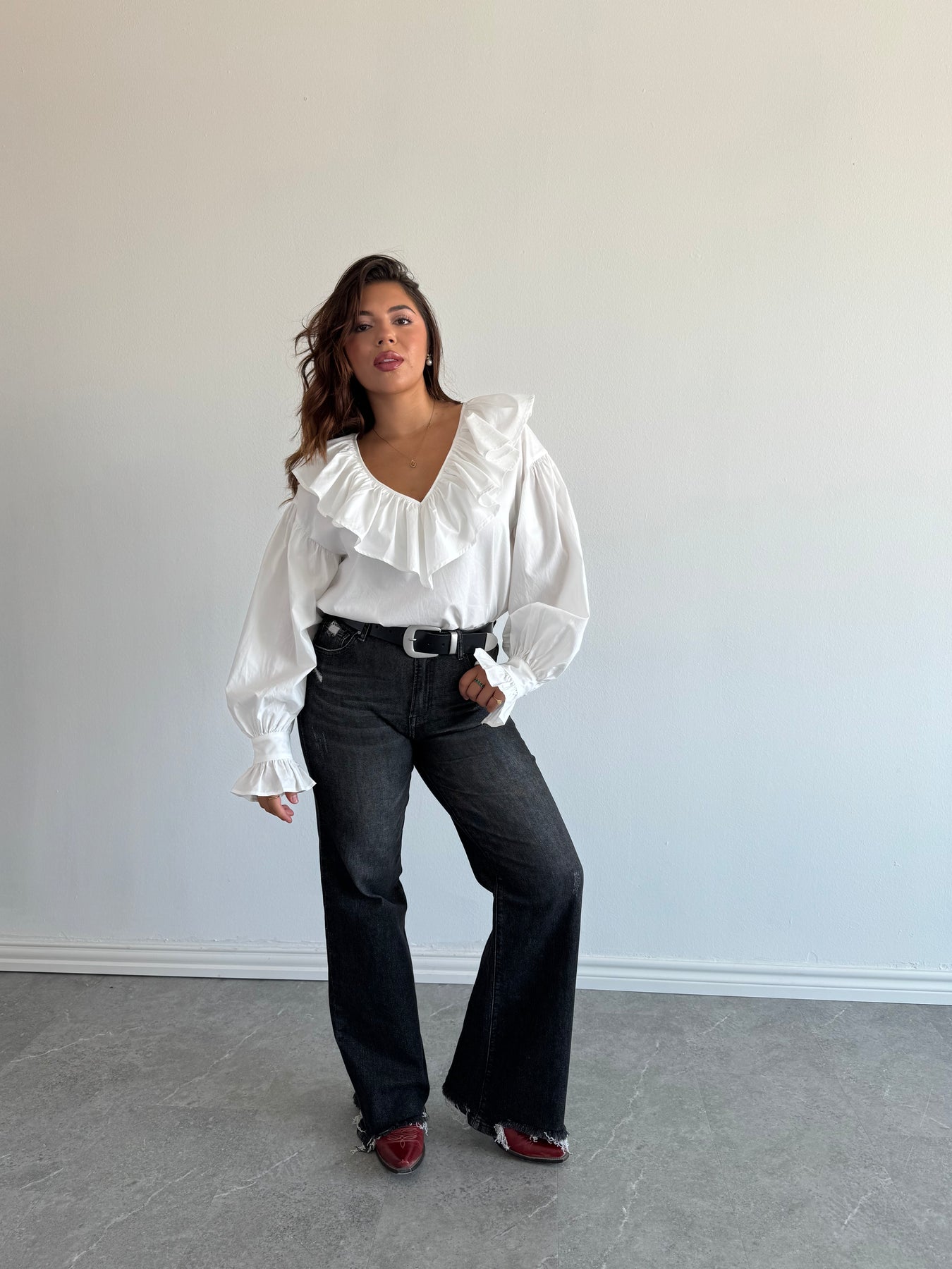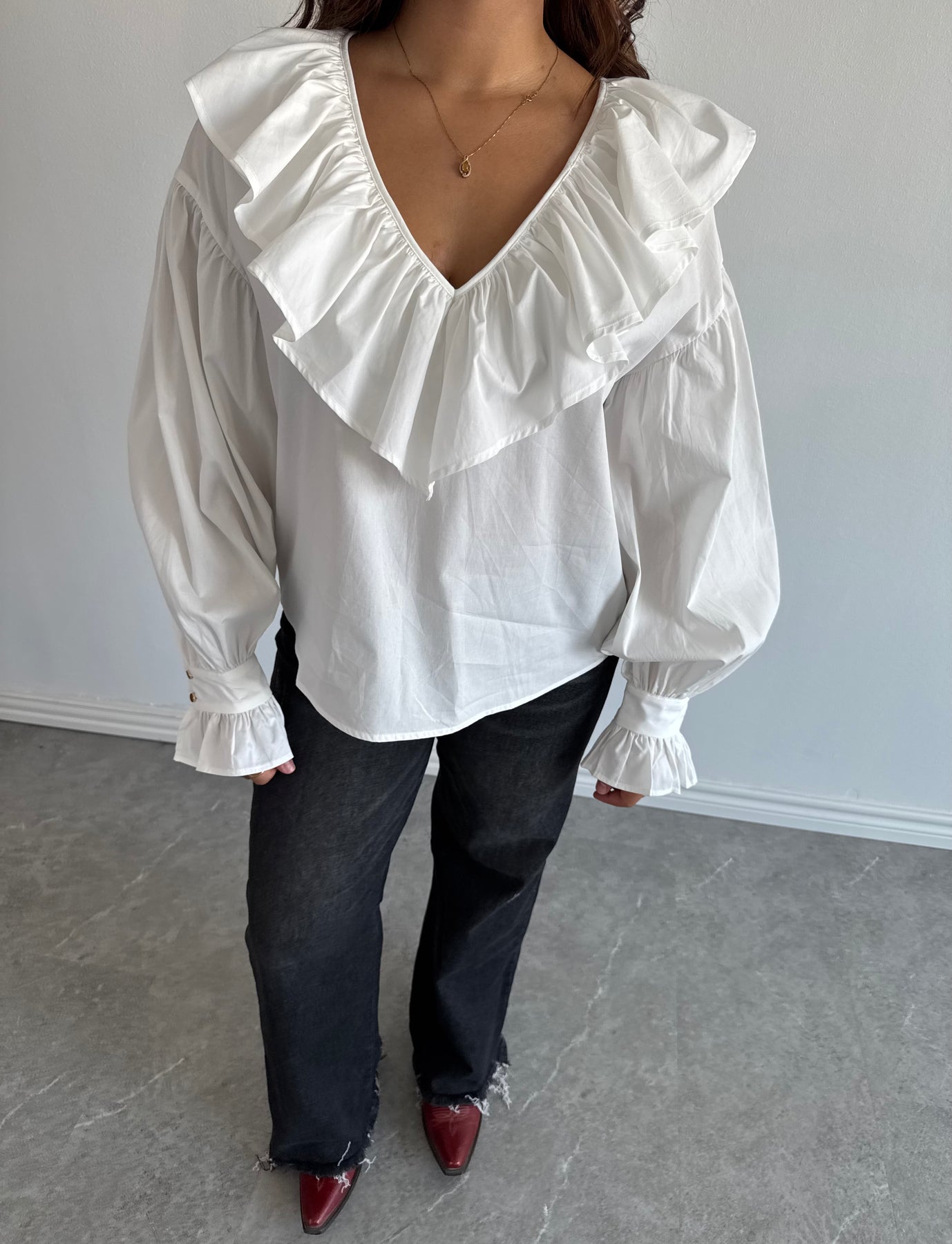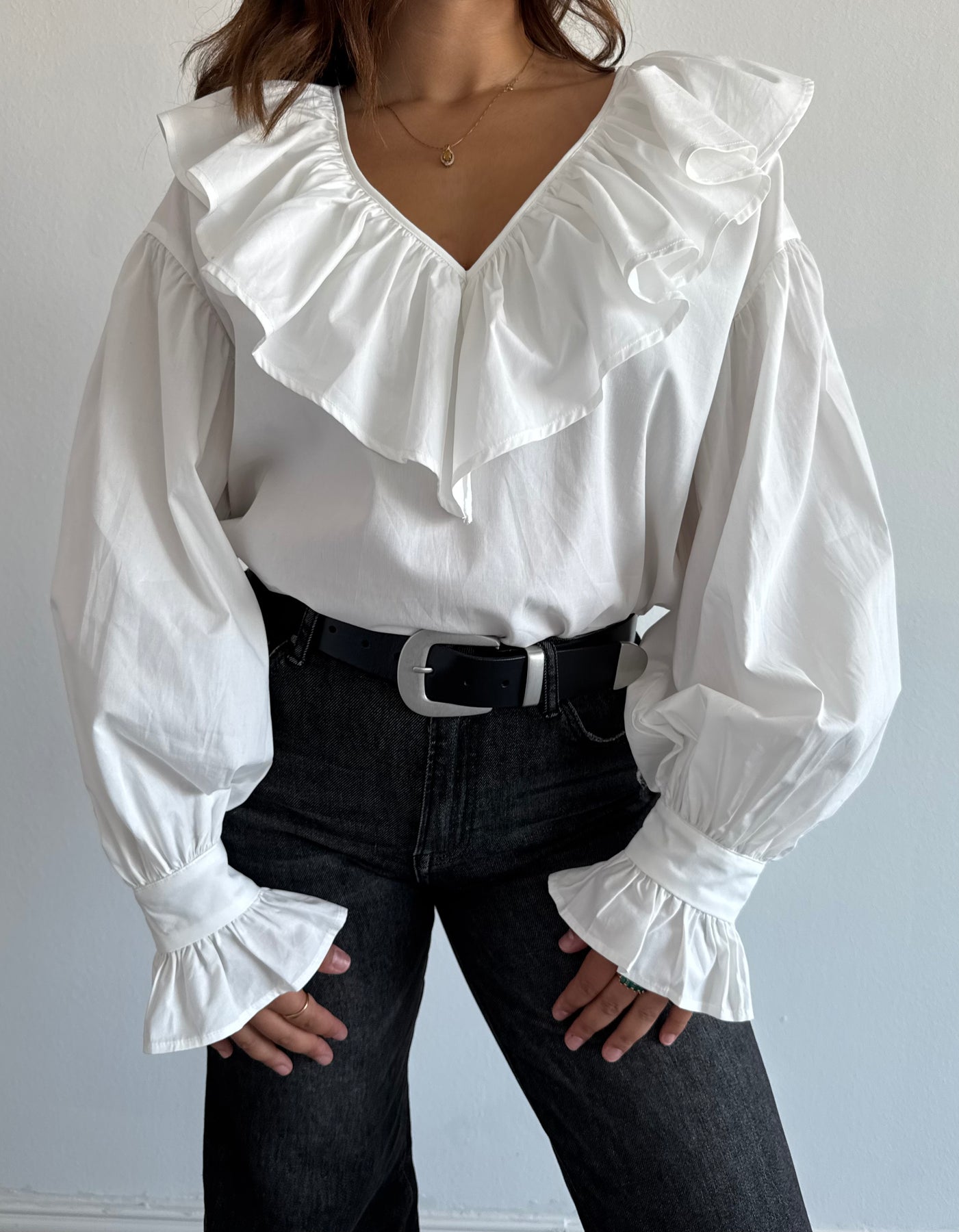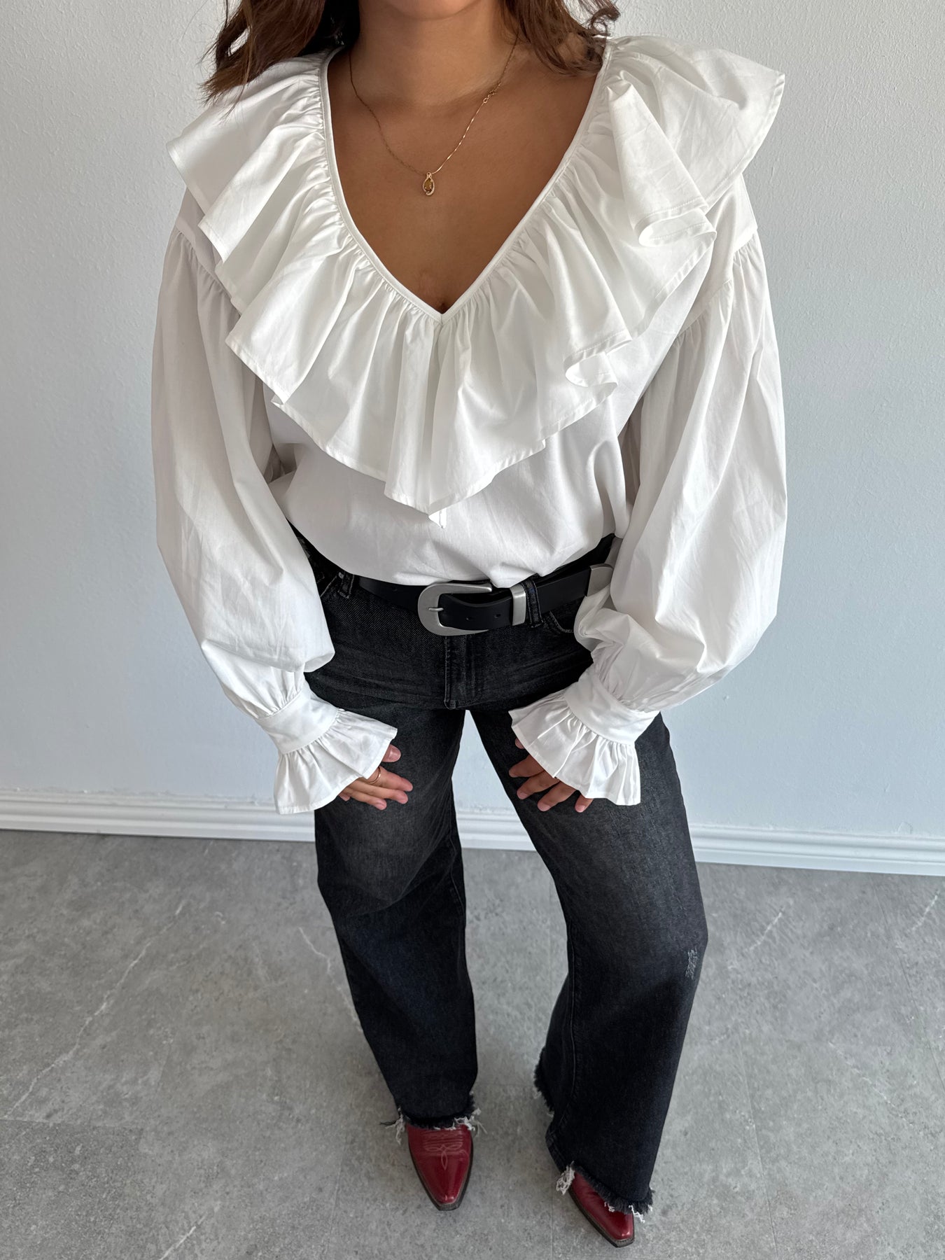 WHITE RUFFLE BLOUSE