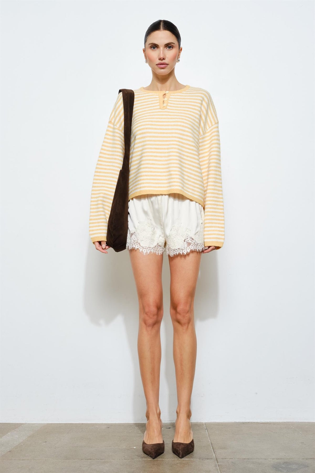 YELLOW STRIPED HENLEY SWEATER