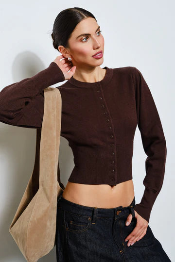 (ESPRESSO) SNAP BUTTON CARDIGAN
