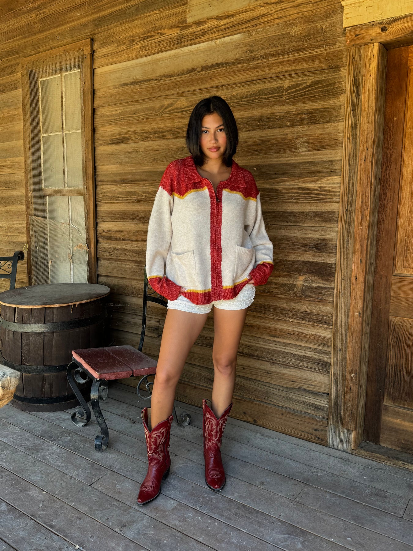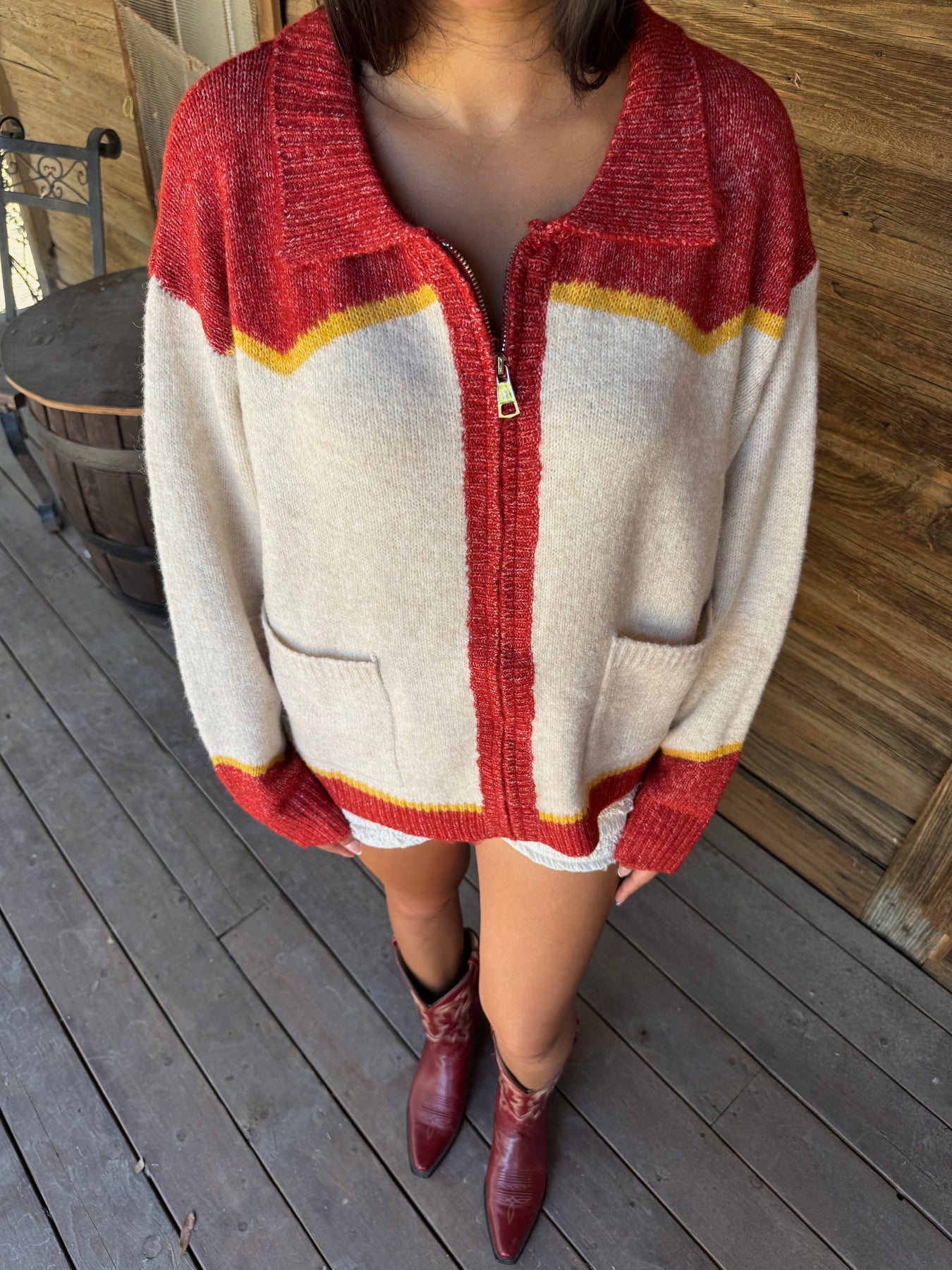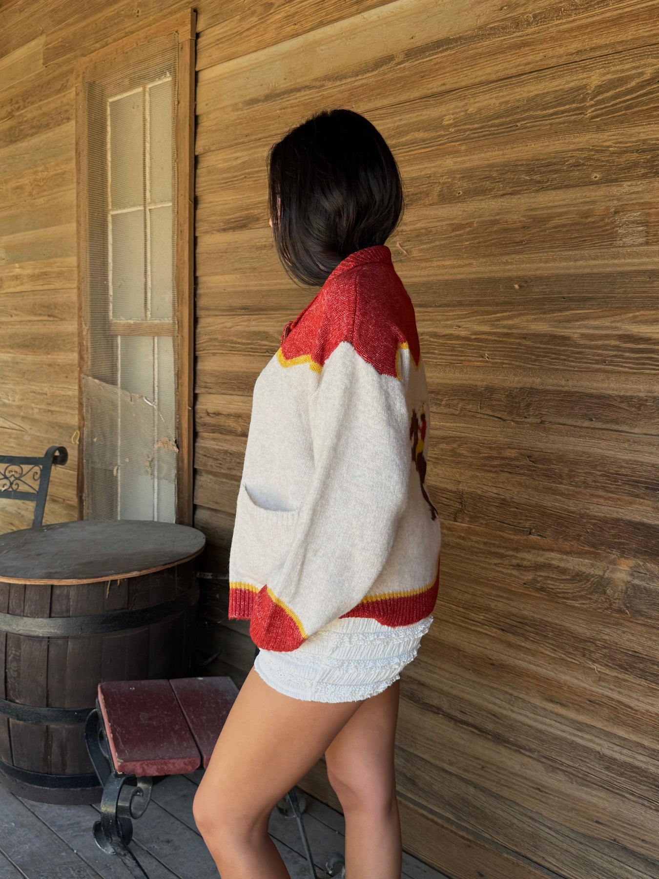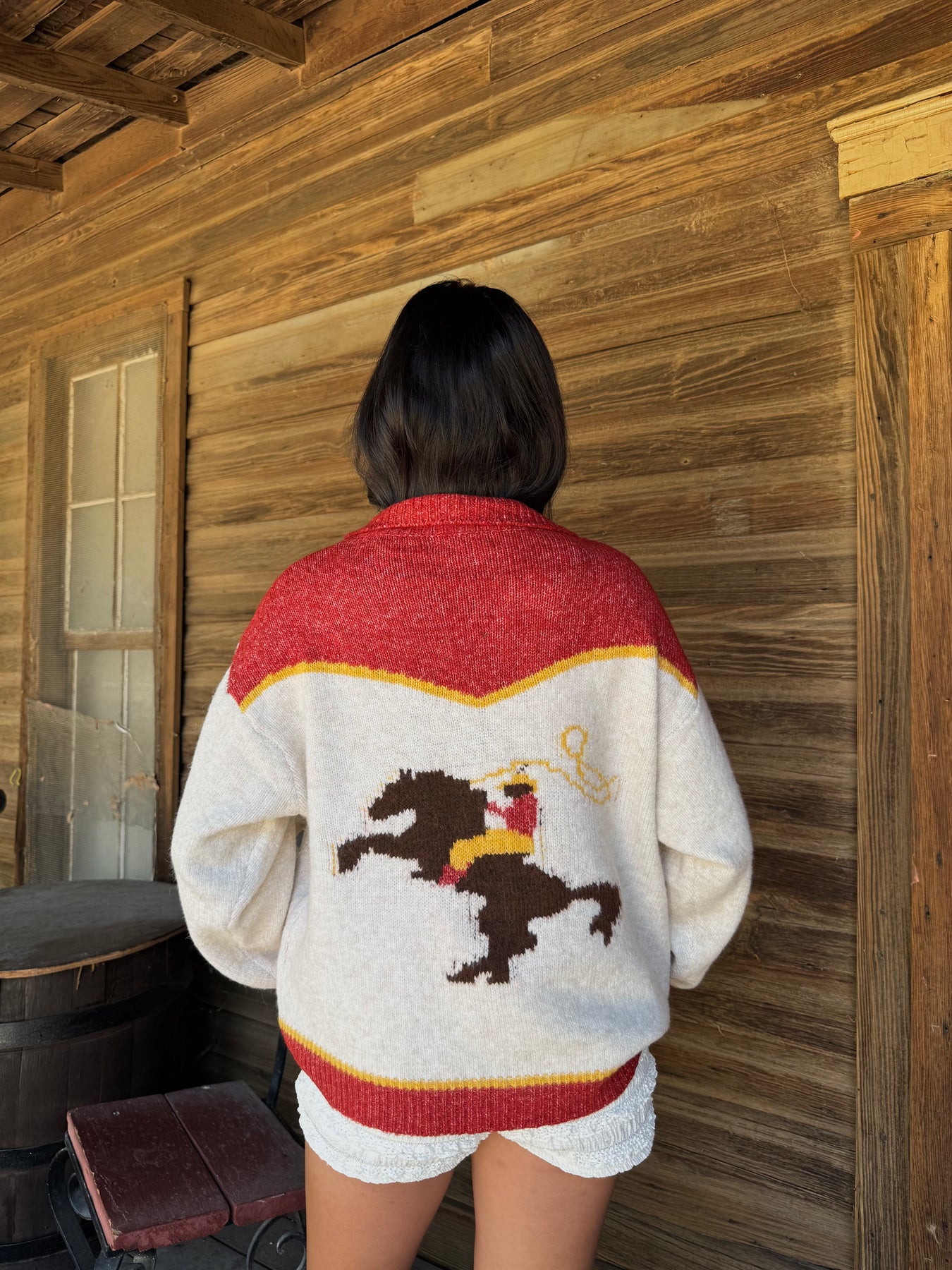 ROPING COWBOY ZIP UP SWEATER (RED)