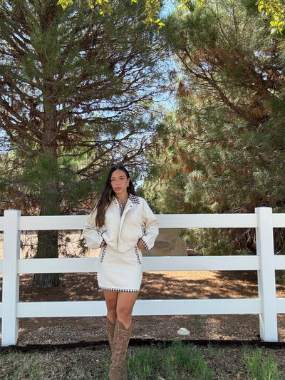 CONTRAST GINGHAM JACKET + SKIRT SET