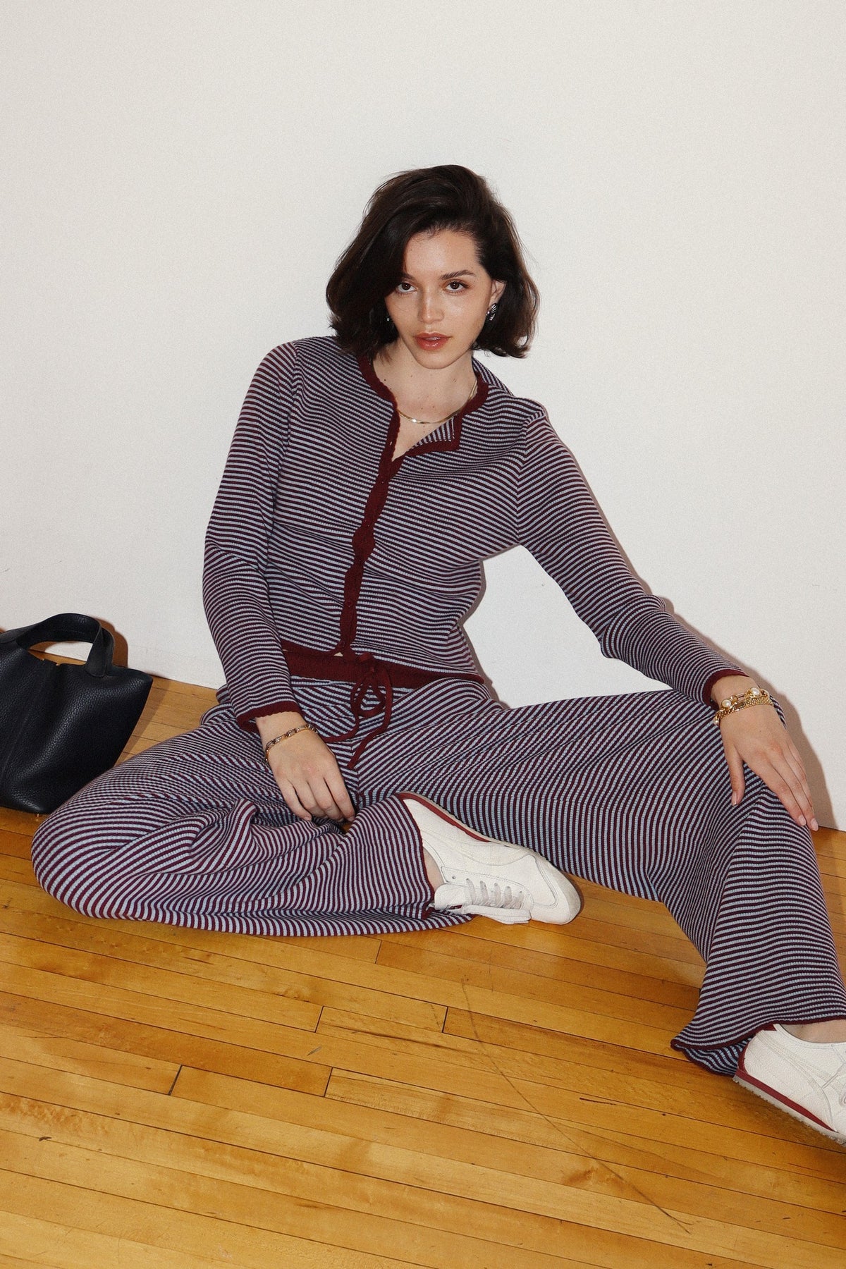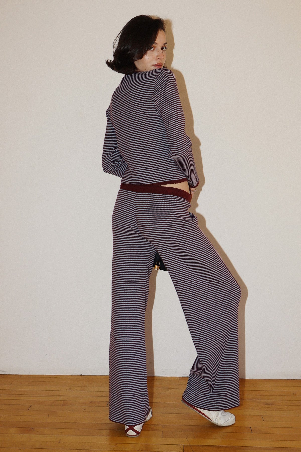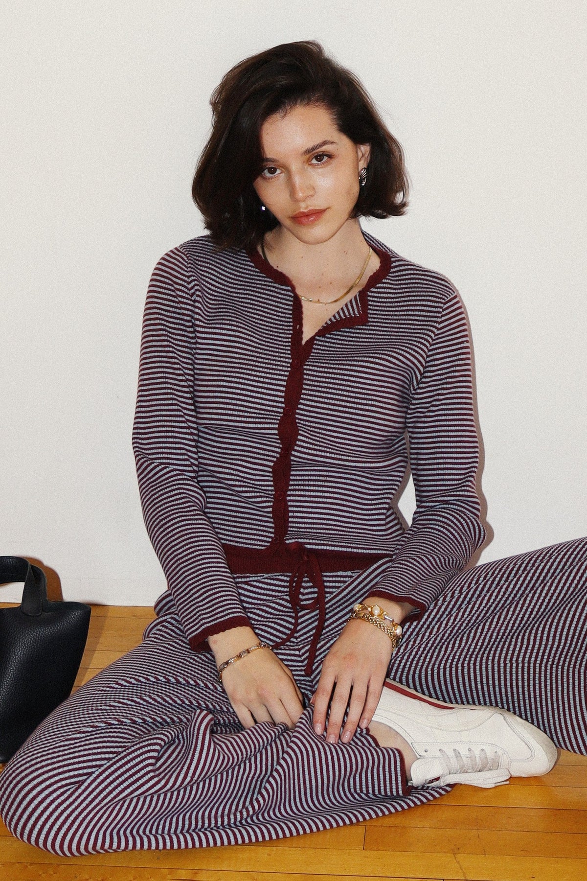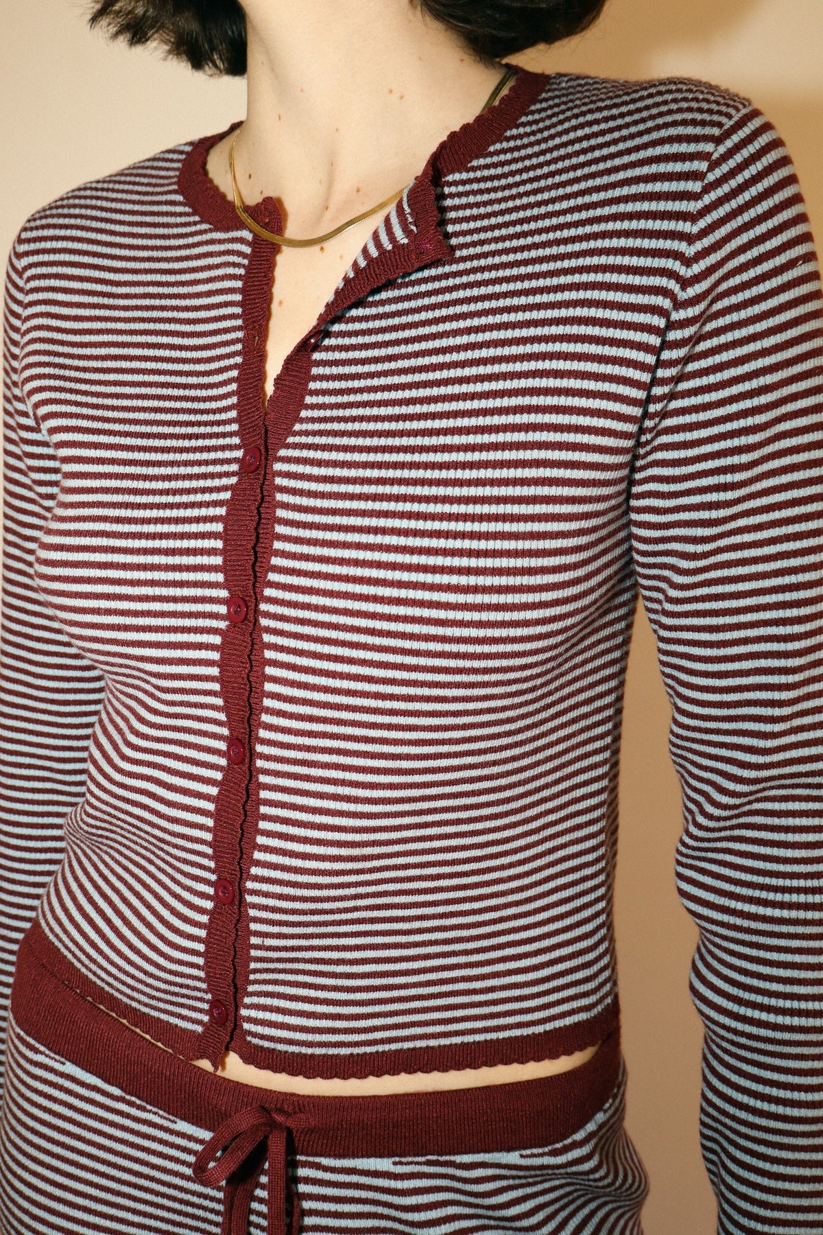 BEET/BLUE CARDIGAN + PANTS SET