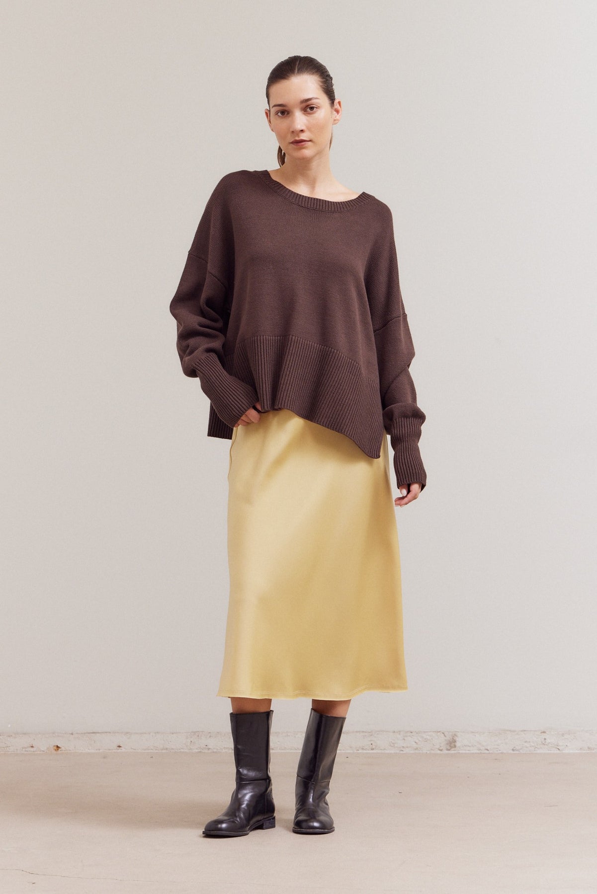 BROWN SIDE SLIT SWEATER