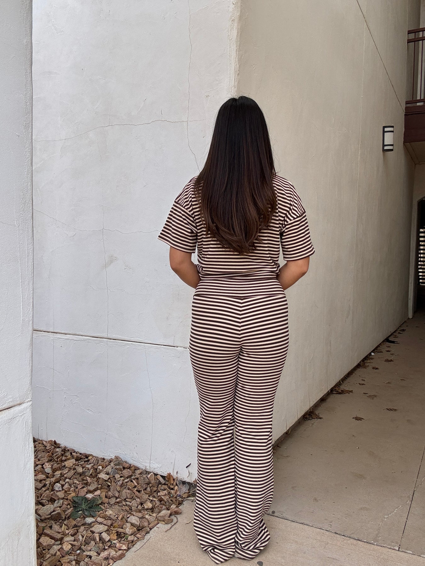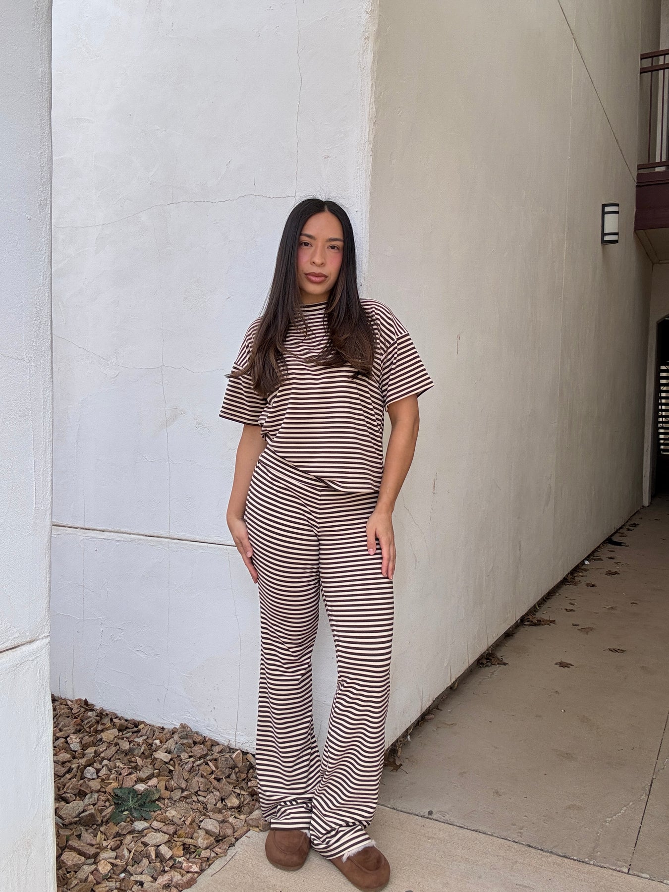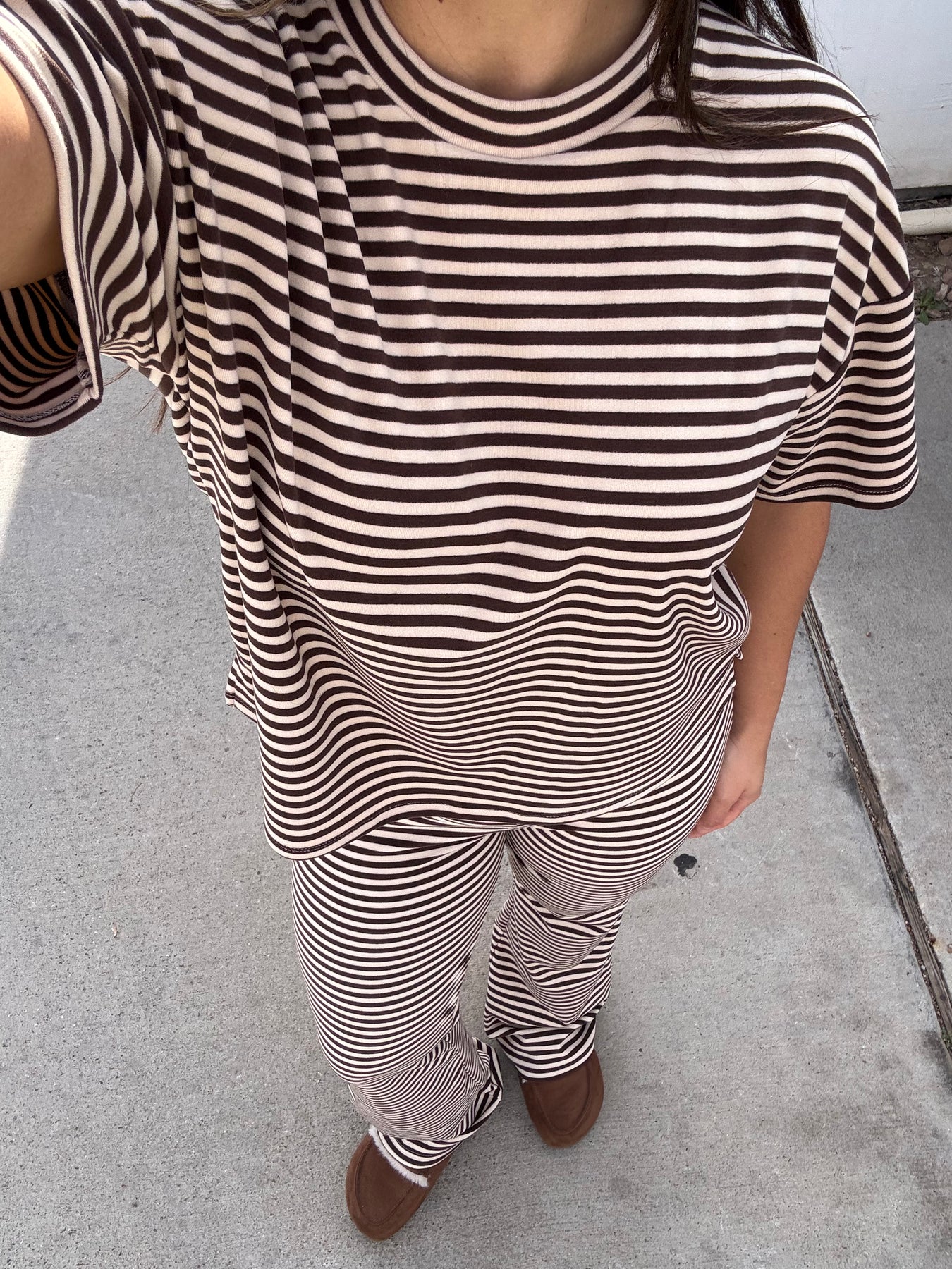BROWN/TAN STRIPED TOP + PANTS SET